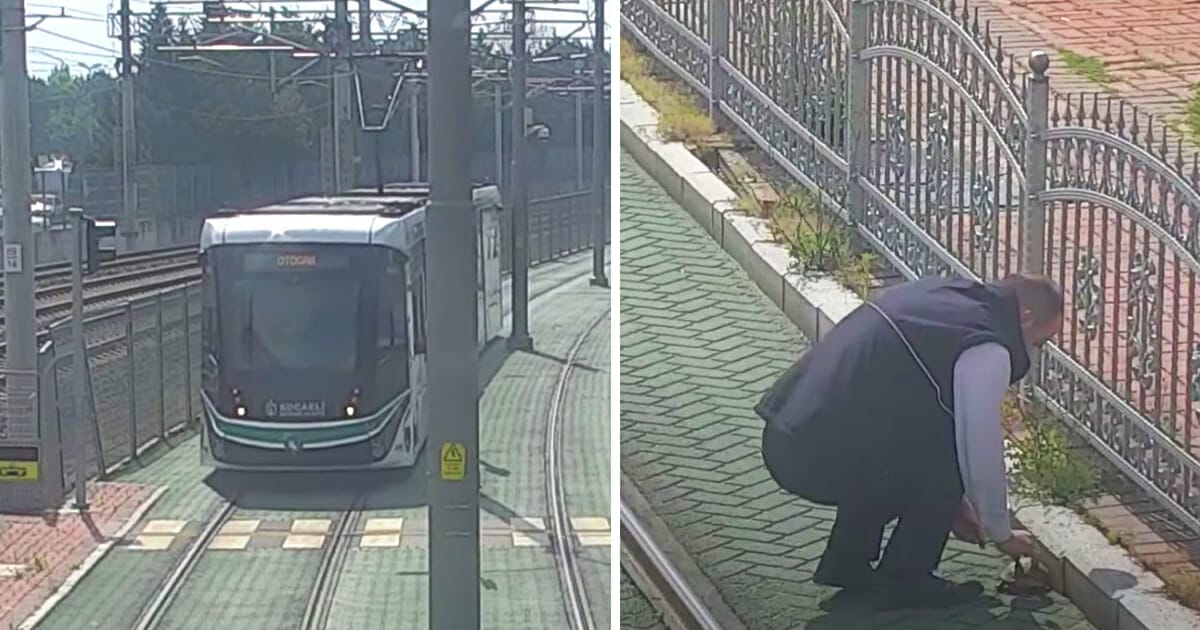 Hemlös hund i livsfara när han vandrar längs tågspåret