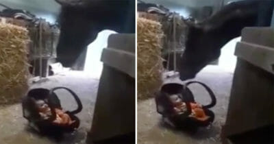 Bebisen börjar gråta högljutt i stallet – då närmar sig den stora hästen och gör det otroliga