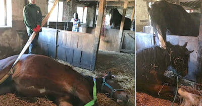 Fölet får panik när mamma häst är i knipa – då skyndar sig djurhjältarna dit