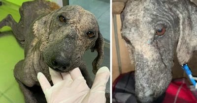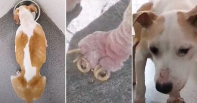 Hemlös hund har nästan ingen päls kvar på kroppen – får komma till ett hem och förvandlingen blir total