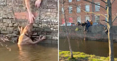 En fantastisk hjälteinsats. Det är vad som utspelade sig i Manchester i veckan. Ett gäng modiga djurvänner lyckades då dra upp en panikslagen hund som ramlat ner i en kanal. Räddningsinsatsen fångades på film och ...