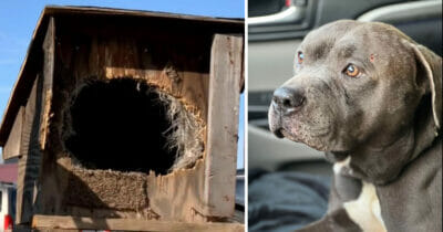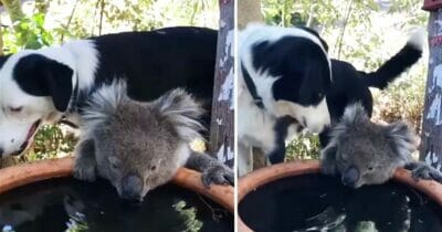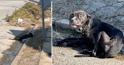 Panikslagen hund kämpar för att ta sig upp ur lerig kanal – då gör ett gäng det ingen annan vågar