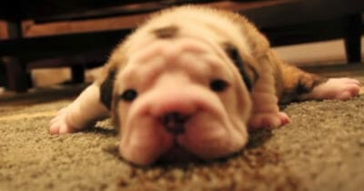 Hundvalpen ska ta sina allra första steg – underbara reaktionen smälter alla djurvänners hjärtan