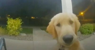 Hunden ställs mot ett lamm i hage – mjuka tuffingens nästa drag får miljontals människor att skratta
