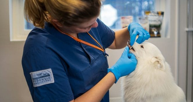Utöver daglig tandborstning och ett kosttillskott som förebygger plackbildning rekommenderar Caroline djurägare att regelbundet undersöka sin hund eller katts tandstatus.