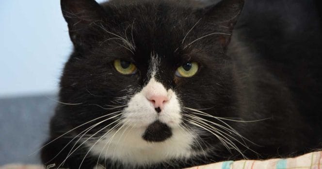 Numera bor han tillsammans med matte och fyra kattkompisar, han älskar att kela och har det bästa tänkbara kattlivet i ett hem som är anpassat särskilt för honom. Grizzlys historia visar att det finns ett hem till varje katt – även de som är äldre, skygga eller har särskilda behov.