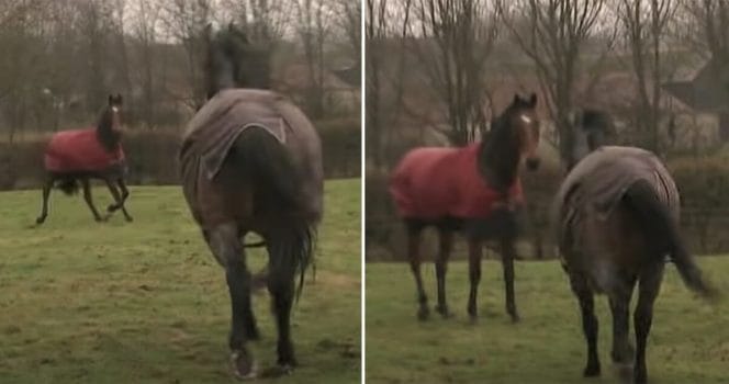 Hon hade ingen aning om hästarna skulle känna igen varandra efter fyra år isär. Men eftersom hon inte visste vad hon hade att vänta bestämde hon sig för att filma ögonblicket.