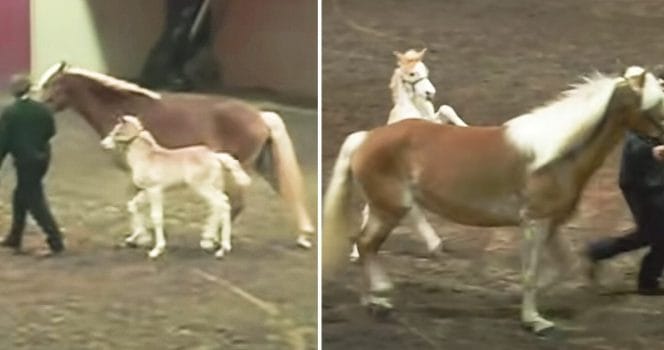 Då vandrade nämligen den här lilla söta killen, vid namn Blitz, in tillsammans sida vid sida med sin mamma. Blitz var bara 21 dagar gammal vid det här tillfället, och även om han försiktigt vandrade in vid den större hästens sida till en början, skulle han bara sekunder senare få visa upp sin intensiva show!