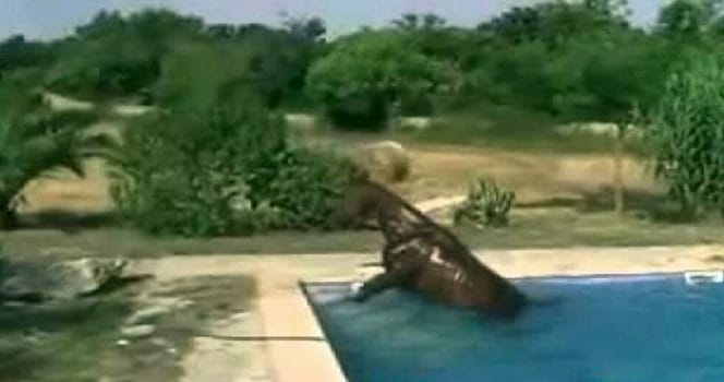 För en viss häst finns det helt enkelt inget bättre sätt att undkomma sommardagarnas glödheta värme – än att hoppa in i sin ägares pool och simma runt ett varv.