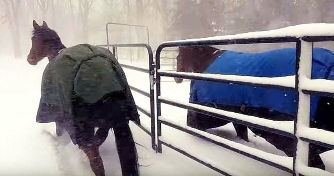 Att hästarna i videon nedan hade fått värmande filtar på sig verkade dock inte spela någon roll.