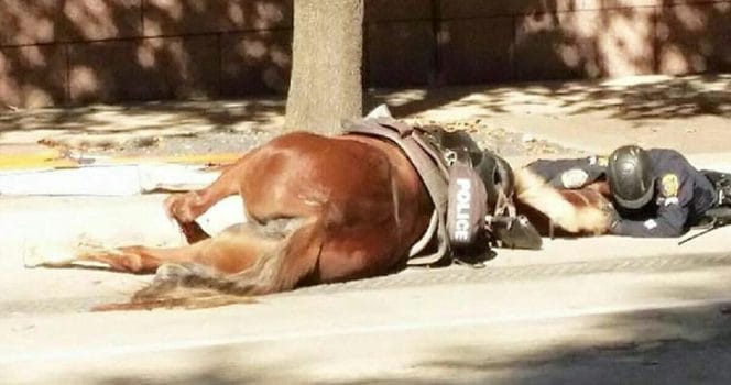 Hästen, en sex år gammal Tennesee Walker vid namn Charlotte, dog i december 2015 medan han patrullerade med sin ryttare, polisen D. Herrejon.