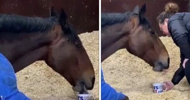 – Jake är en av våra 12 hästar som vi har här i stallet som arbetar med oss. Jag skulle definitivt beskriva honom som en häst med stor karaktär. Vi har alla lärt oss hans speciella önskemål när det kommer till hans te. Han vill ha en sockerbit men blir definitivt lyckligare om du kommer ihåg att ge honom två, säger Lindsey Gaven som tränar hästarna.