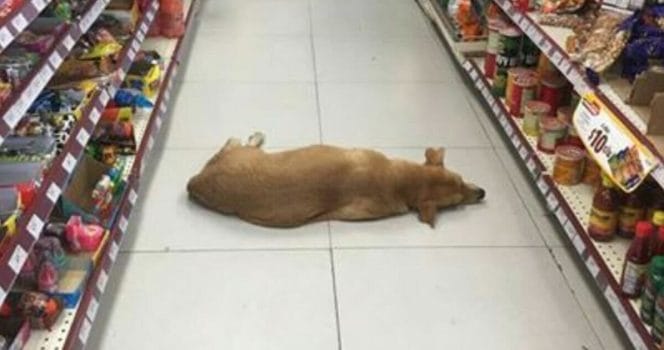 Vi har hört många historier om hundar som lider i den isande kylan och de godhjärtade insatser från olika ställen som öppnat sina dörrar för att hålla dem varma. Men hundar är också mottagliga för den extrema värmen – och en varm dag visste en butik att det var rätt sak att låta en hund komma in för att svalka sig.