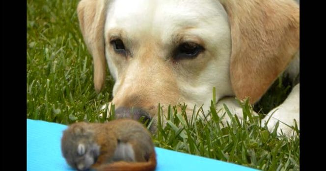 Hunden blir bästa vän med ekorrunge