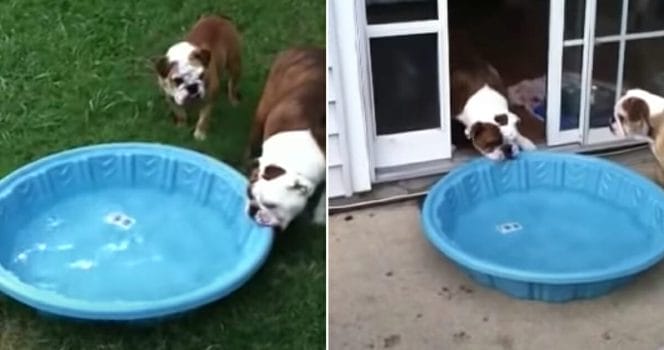 Det tog den här hundägaren tillvara på när hon en sommar för många år sedan ställde fram en liten pool i trädgården. Detta så att hennes två bulldoggar skulle kunna få möjlighet att svalka sig i värmen.