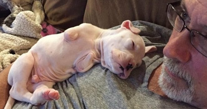 Den stackars hunden var bara fyra timmar gammal när veterinären sa att det förmodligen skulle vara det bästa att avliva honom.