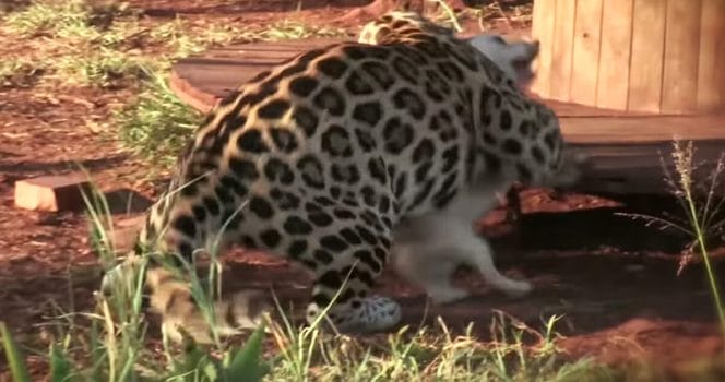 När Jags, som först kom till fristaden bara några månader gammal, växte sig större och fick en ny stor inhägnad var skötarna oroliga för Bullet. Det var ju faktiskt en jaguar som enkelt kunde äta upp hunden, och till en början fick Bullet inte följa med till Jags nya hem.
