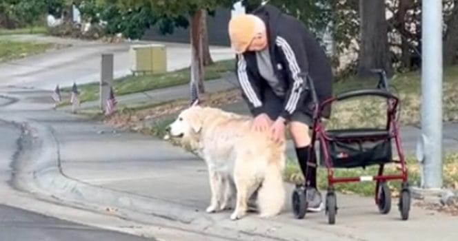 Denna golden retrievern sprider verkligen sin glädje i kvarteret.