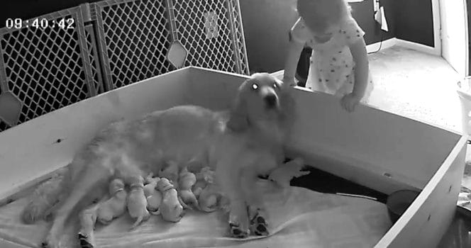Innan hon fortsätter titta på sina valpar. Flickan fortsätter att klappa sin fina hund. Det hela är mycket vackert och kärleksfullt och klippet har förstås gjort stor succé med miljontals visningar.