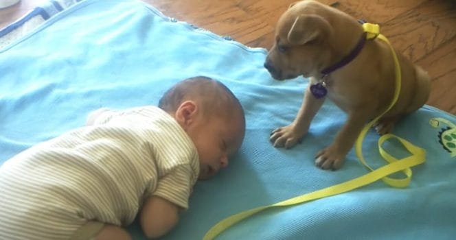 Orden ”bebis” och ”hund” i kombination måste vara bland det sötaste som finns. Det här klippet är ett bra exempel på det.