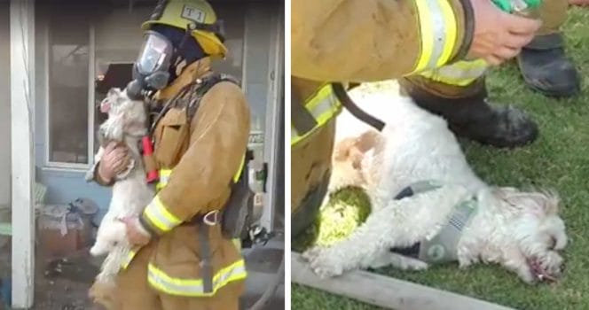 När den här brandmannen fick syn på en hund i det brinnande huset han jobbade med gjorde han allt i sin makt för att rädda ytterligare ett liv.