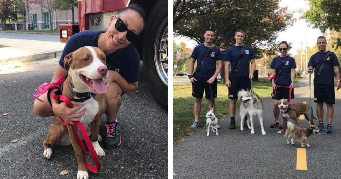 Det var i förra veckan som de sex hemlösa hundarna Maybelline, Sasha, Naomi, Levi, BB och Dory fick uppleva en långpromenad de sent kommer att glömma. De fick nämligen gå ut och gå med sex brandmän från brandstationen i Arlington i USA.