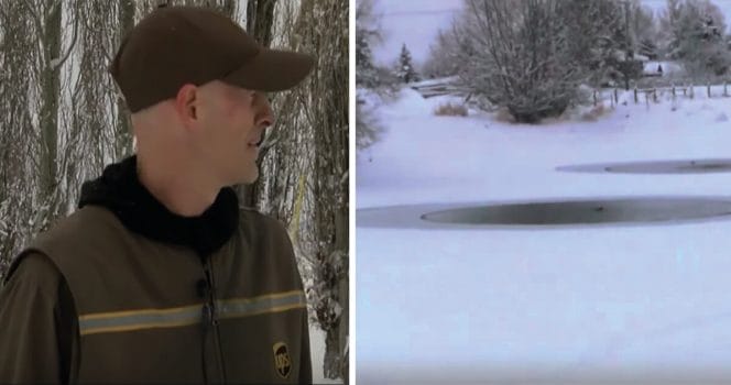 Postbudet Ryan Arens, som jobbar för amerikanska företaget UPS, var ute och levererade paket i Montana när han hörde märkliga ljud från dammen han passerade.