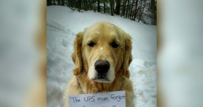 Då hoppade hunden rakt ner i hans väska och gömde sig. Han följde med till grannarna i bakluckan på brevbärarens bil. När postmannen efter ett tag upptäckte detta körde han genast hem honom till sin husse och matte. Hundägaren tyckte hela situationen var fruktansvärt rolig och nästa dag satte han en lapp på sin hunds bröst, lagom till postmannen som jobbar på företaget UPS brukade dyka upp, enligt Dog-Shaming.