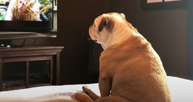 Den filmälskande hunden sitter stillsamt i en soffa eller säng och ser när dinosaurierna går till attack mot en ensam och skrikande kvinna. I takt med att spänningen blir allt större – och faran allt mer akut för skådespelarkvinnan – börjar bulldoggen själv att reagera.