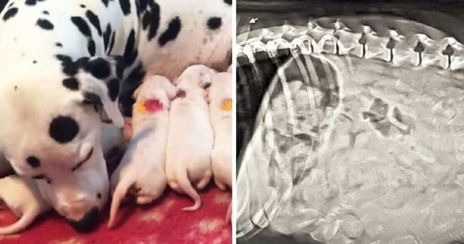 Det bara fortsatte komma fler och fler valpar inifrån Miley… Hela 16 valpar såg dagens ljus – trots veterinärens dom om att hon väntade ”bara” tre valpar!