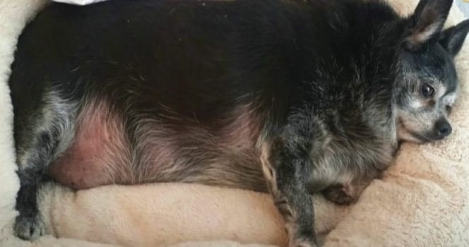 Shorty vägde åtta kilo som mest – dubbelt så mycket som en normal chihuahua. Men nu skulle snart en fantastisk hälsoresa starta.