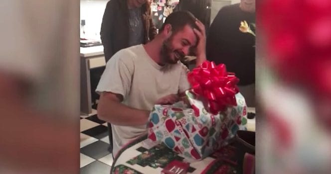 Hela familjen hade samlats vid köksbordet och Dena lämnade över ett stort paket till Peter.