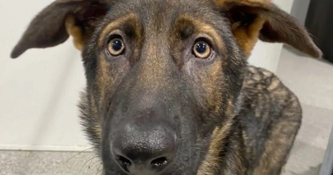 För schäfern Carlile fick livet inte en bra start. Han hittades i en soptunna när han var bara fem månader gammal, vilket djurskyddscentret Humane Society of Tampa Bay har skrivit om på sin Facebook.