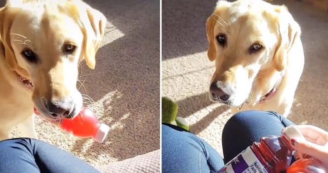 Duktig diabeteshund hämtar juice till sin matte – men hennes sluga baktanke får hela nätet att skratta