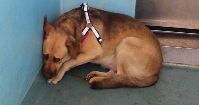 På de hjärtskärande bilderna inifrån djurhemmet går det tydligt att se hur ledsen hunden var. Enligt vittnen tittade hon inte ens en människa i ögonen. Hon var så rädd när hon gömde sig i hörnet.