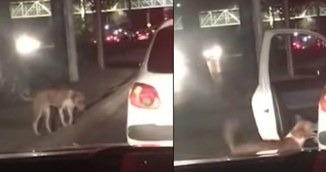 Enligt honom ska bilen framför då ha öppnat framdörren och personen i fordonet ska ha börjat prata med vovven. Jess förstod att de ville hjälpa hunden och började filma allting.