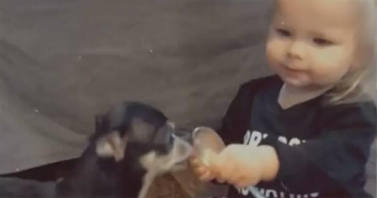 De sover tillsammans, äter ihop och kollar på film sida vid sida. Och tro det eller ej men den här hunden har ingenting annat än kärlek för dessa tjejer.
