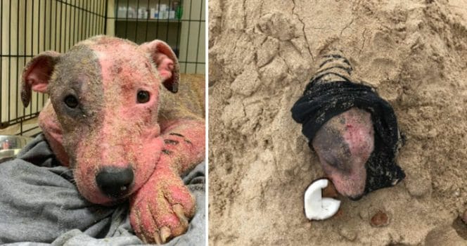 Hunden begravdes levande – och hittades med brännskador och öppna sår.