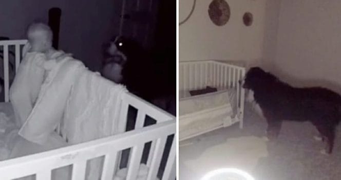 När lilla Elainey sov i sin spjälsäng i hemmet så skaffade sig familjen en baby monitor – så att de kunde titta till henne då och då. Vad de upptäckte direkt var att även hunden Berkley ville ta sitt ansvar.