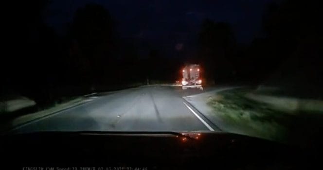 När Jonathan Romero var ute och körde på natten efter att ha arbetat, fick han plötsligt se hur en lastbilschaufför gjorde det förskräckliga.