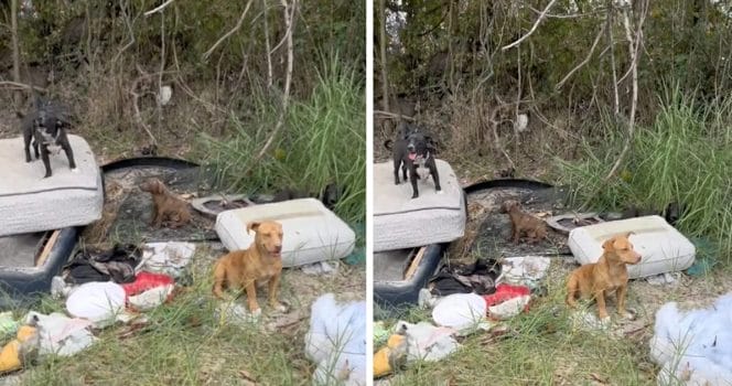 Mitt bland sopor, högar av smuts och gamla madrasser såg hon en hundfamilj som blivit övergiven.