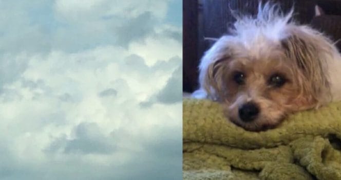 Men sedan tittade hon upp i molnen… och såg sin hunds ansikte. ”Jag grät, tittade upp i himlen och såg Sunny.”