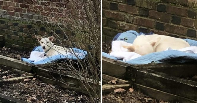 För mitt bland blommor och jord låg en nedkyld, blöt, smutsig och hjälplös hund.