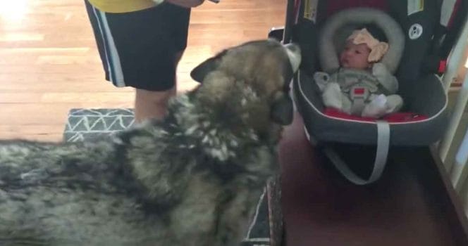 Så också i det här fallet, där en Alaskan malamute får möta en liten, liten knodd för allra första gången! Videoklippet är så gulligt att jag tycker alla borde få se detta.