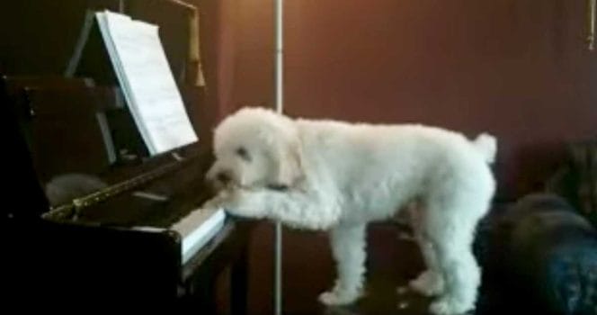 Men det är inte bara människor som gillar musik – även hundar kan uppskatta det. Den här hunden i videon nedan nöjer sig inte med att lyssna på musik – utan vill skapa egen musik också.