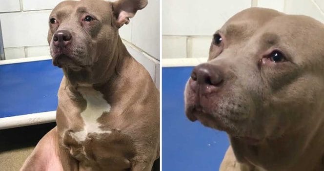 En dag när hon besökte ett av hundhemmen i området såg hon en pitbull sitt ensam i en av burarna. Det var något med den här hunden som fick hennes hjärta att slå extra hårt. Hundens sorgsna ögon vittnade om att hon varit med om något mycket hemskt.