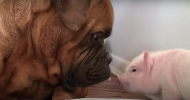 En hund på 60 kilo och en lite griskulting har kanske inte jättemycket gemensamt.
