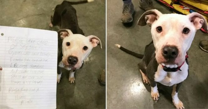 ”Var snäll och ta hand om Sky. Hon är 6 år och vänlig. Jag kunde inte ta hand om henne. Jag blev hemlös och kunde inte mata henne. Hon är inte sjuk, bara hungrig, mycket vänlig. Snälla hitta henne ett hem. Snälla du.”