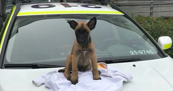 ”Här har ni gruppens nyaste medlem, ”Buzzkills Beck”. Han är snart nio veckor gammal och en framåt och nyfiken valp. Just nu är han bara 100 % söt men förhoppningsvis, om si så där ett och halvt år, ska han ut och patrullera tillsammans med sin matte”, skriver de.