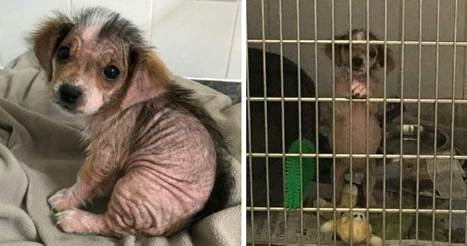 Stackaren hade ingen päls kvar efter att ha vanvårdats. Hon var ensam och ledsen, men snart skulle den här hunden få den hjälp hon så väl både behövde men framför allt förtjänade.